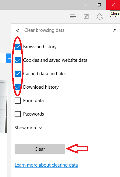 Edge Win Clearing Cache And Cookies